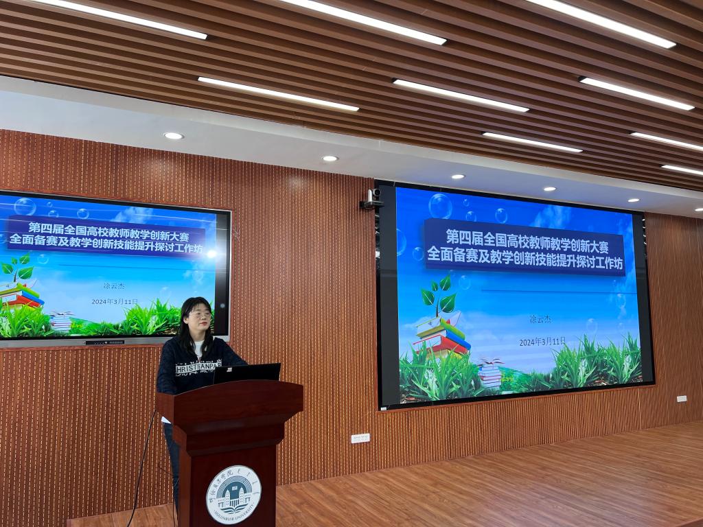 为了深化教学创新理念的推广,切实提升教师的教学创新能力,助力教师打造出高品质的参赛作品,3月11日,教师发展中心(党委教师工作部)在崇文楼A501会议室成功举办了教师教学创新大赛的赛前培训活动。此次培训由教师发展中心(党委教师工作部)副主任杨蕾主持。